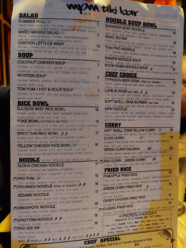 For fried rice aficionados, MPM Tiki & Sports Bar offers several variations, including the Pineapple Fried Rice with its sweet and savory combination, as well as the Green Curry Fried Rice, a perfect mix of creamy and spicy flavors. The Drunken Fried Rice is an exciting choice for those who like their meals with a bit of kick, while the Crispy Chicken Fried Rice is a satisfying, crunchy delight.